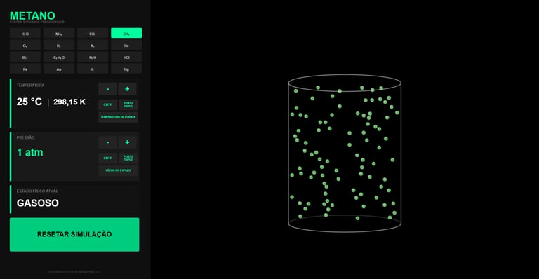 Experimente o simulador de estados físicos, uma plataforma avançada de simulação termodinâmica projetada para visualizar o comportamento cinético da matéria em escala molecular.
